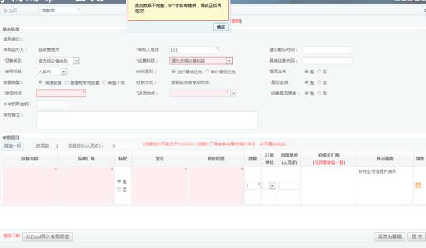 (3)对数据填写不完整的申购单,自动提示,并标红;如下图:
