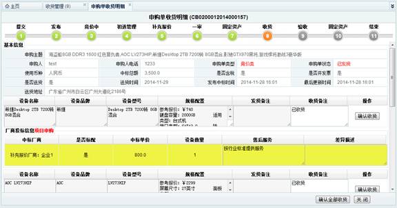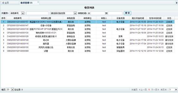 指高校申购用户收到货物后进行的确认,为后续管理提供条件。当申购单存在多个申购项目,可以对单个申购项单独收货处理;也可以对所有的申购项同时收货(前提是该单所有中标厂商都在系统中操作了发货确认)。